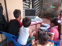 Freddy and Wilma have been visiting people in their homes and teaching computer skills and providing educational materials to children in Managua. Here are some children watching a dvd on one of our donated computers.
